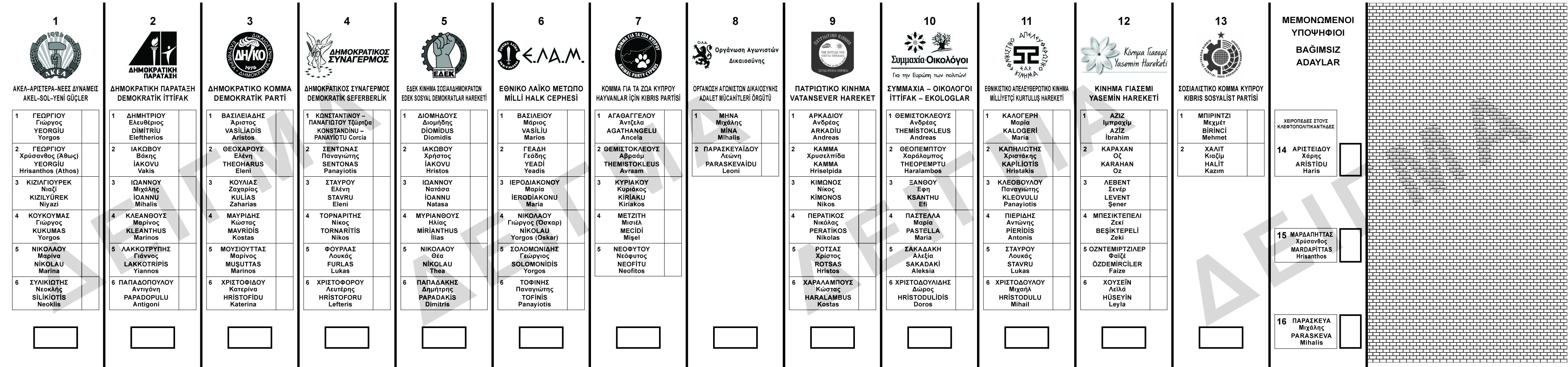 Below is a sample voting slip, showing all the parties and candidates. Electors are reminded that they may vote for ONE party with a tick or a cross in the box at the bottom OR for up to TWO candidates from the same party by marking with a tick or a cross in the box next to each candidate’s name.