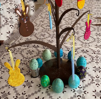 This week, and with Easter celebrations in mind, we had a departure from our usual painting and drawing and enjoyed a very relaxing and fun morning painting Easter decorations ….. as you can see from the photos of the lively, colourful Ceramic Rabbits and Easter eggs! This was followed by a delicious Group Lunch at Piazza Maroni – thank you Spyros and Maria.